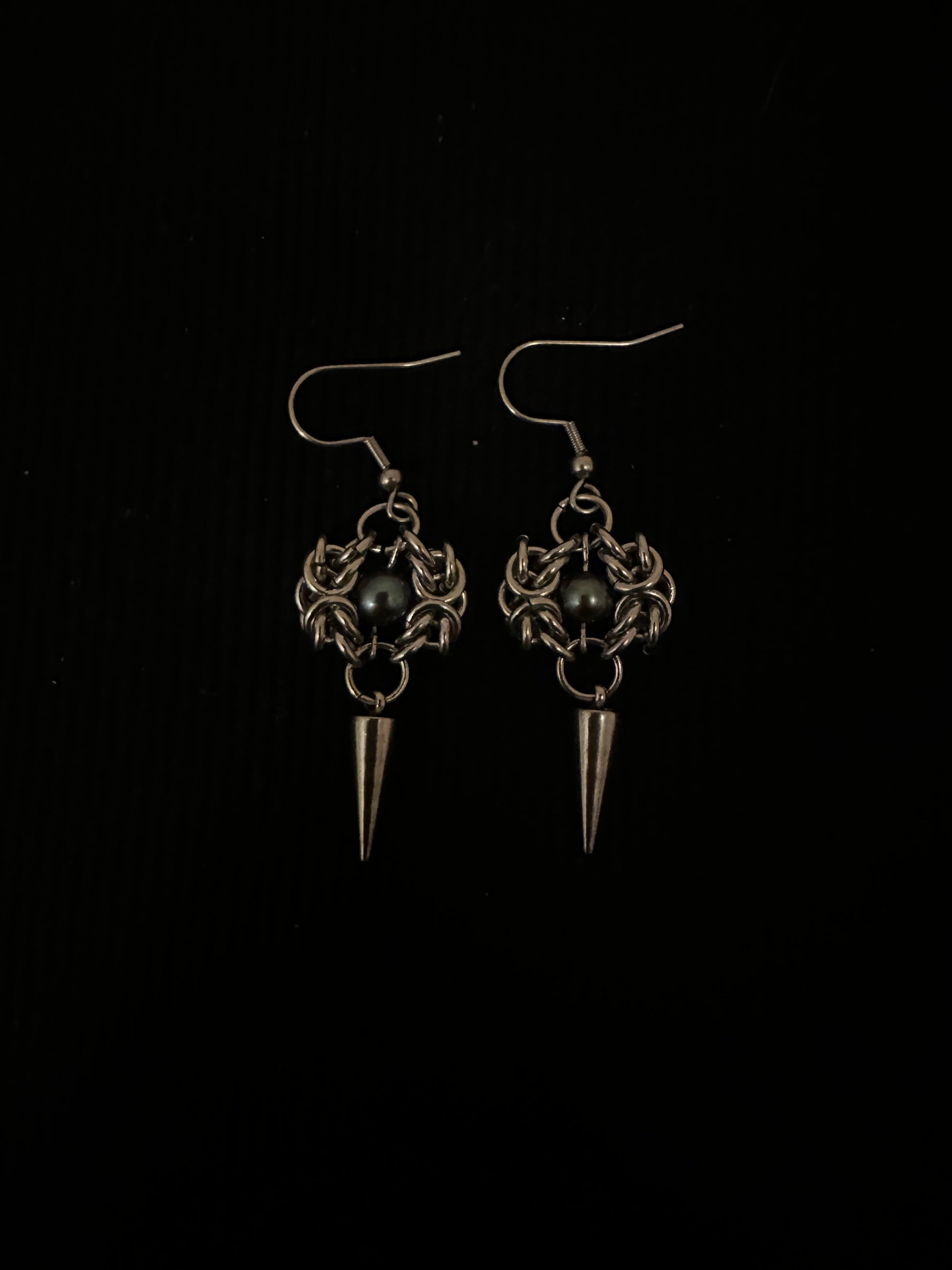 Introducing the EMPRESS earrings. Made using a Tahitian pearl, these earrings symbolise wisdom and prosperity - much like that of the Empress Tarot card. The earrings are made using 100% stainless steel and a genuine Tahitian pearl with a spike charm dangle. They are approximately 3.8cm long or 1.5in.