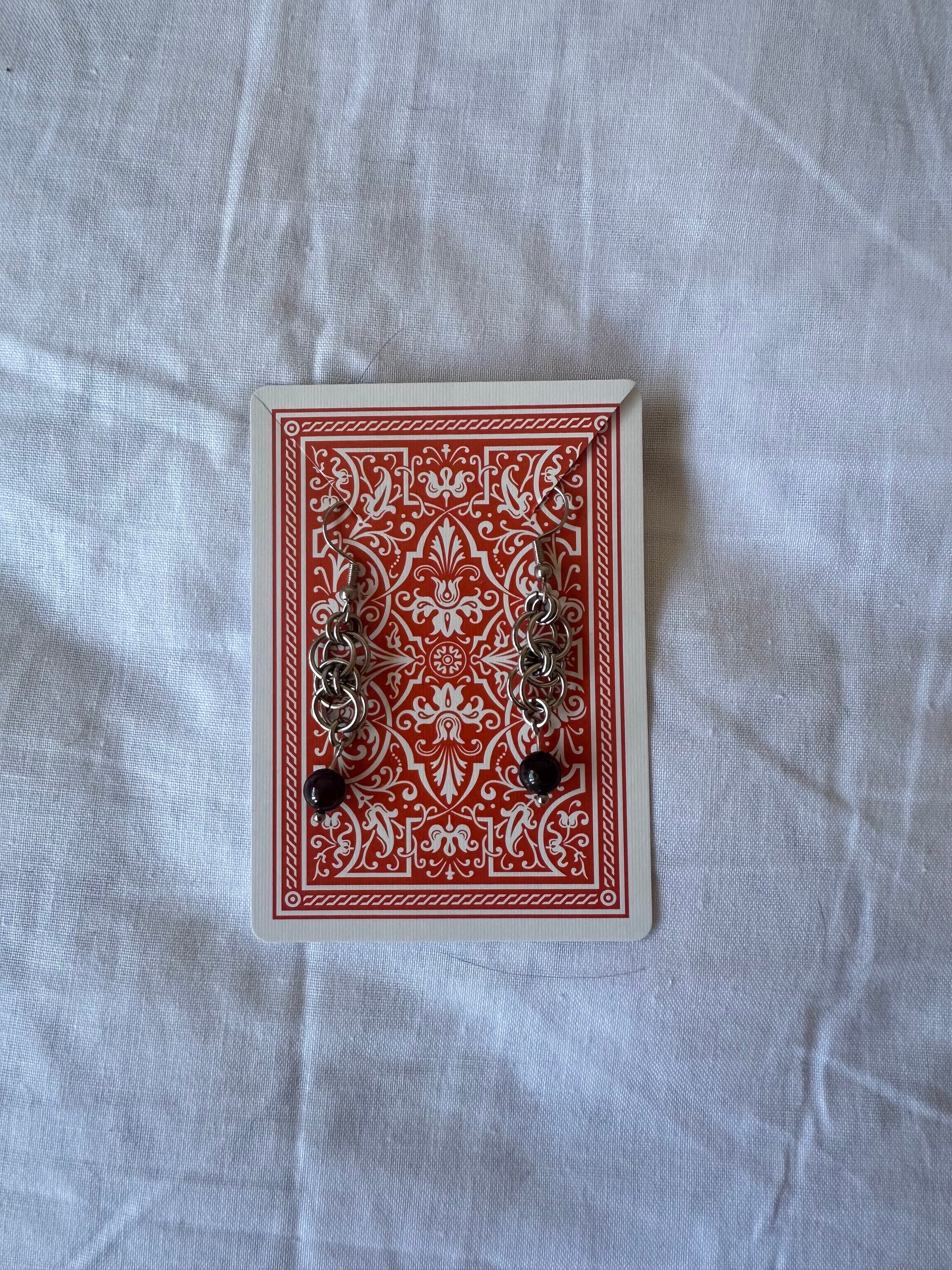 Introducing the STRENGTH earrings. Made using a Garnet crystal, these earrings symbolise determination and strength, making the Strength Tarot card the perfect counterpart. The earrings are made using 100% stainless steel and a genuine Garnet stone. They are approximately 3cm long or 1.2in.