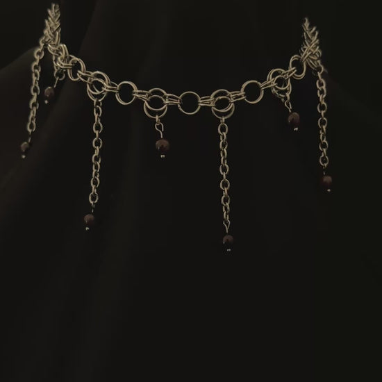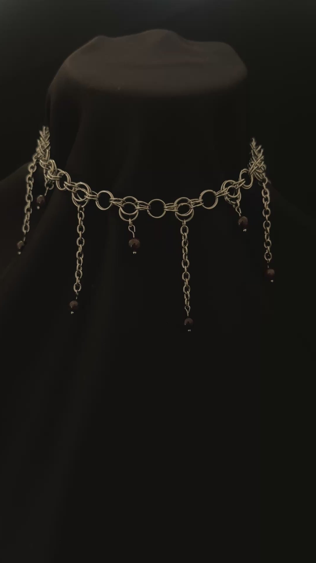 The VAMP necklace is a one-off piece creating a “dripping blood” look by using garnet stones and dangling chains. It has an adjustable chain making it 30-35cm long (can be elongated - please message). It’s made using 100% stainless steel and genuine garnet beads. As there’s only one you’ll be sure to stun in your exclusive piece!